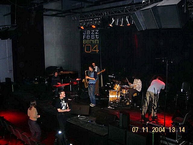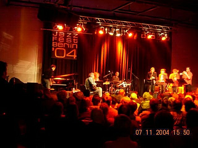 SOME MEMORIES OF THE 2004 BERLIN JAZZ FESTIVAL Jazzfest Berlin in 2004 included a number of Babel Label artists: Huw Warren (with June Tabor, Iain Ballamy, Tim Harries, Martin France) on 6 November; On 7 November, at Kulturbrauerei: Acoustic Ladyland and Billy Jenkins/Fun Horns. Here are some photos of the trip and also of the gigs by Paparazz-O.